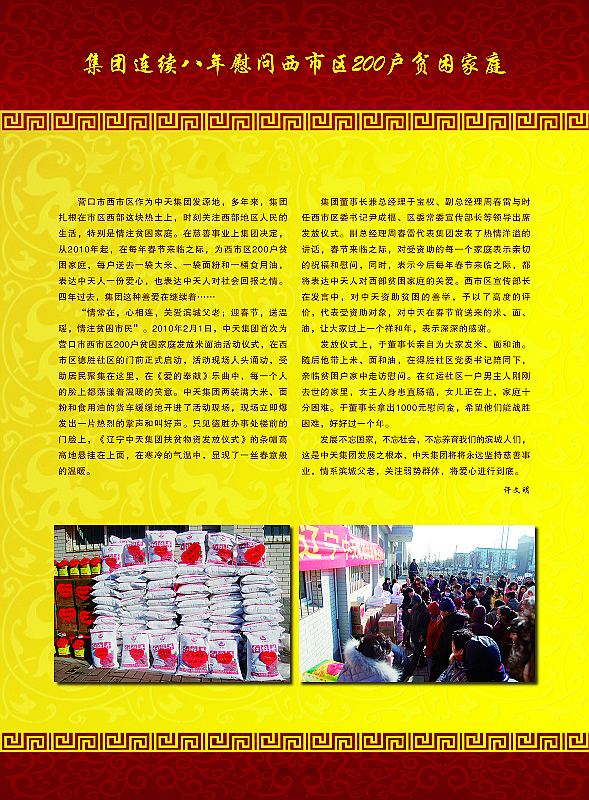 2010年——2017年連續(xù)八年慰問(wèn)200戶貧困家庭