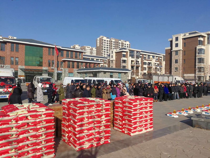2018年1月23日,滿載大米、面粉和豆油的八輛大卡車,在集團(tuán)于寶權(quán)董事長帶領(lǐng)下,直赴營口市西市區(qū)得勝街道紅運社區(qū)廣場,為等候在這里的500戶貧困居民每戶發(fā)放一袋大米、一袋面粉和一桶豆油,表達(dá)中天人的愛心,這是中天集團(tuán)持續(xù)九年的善舉。