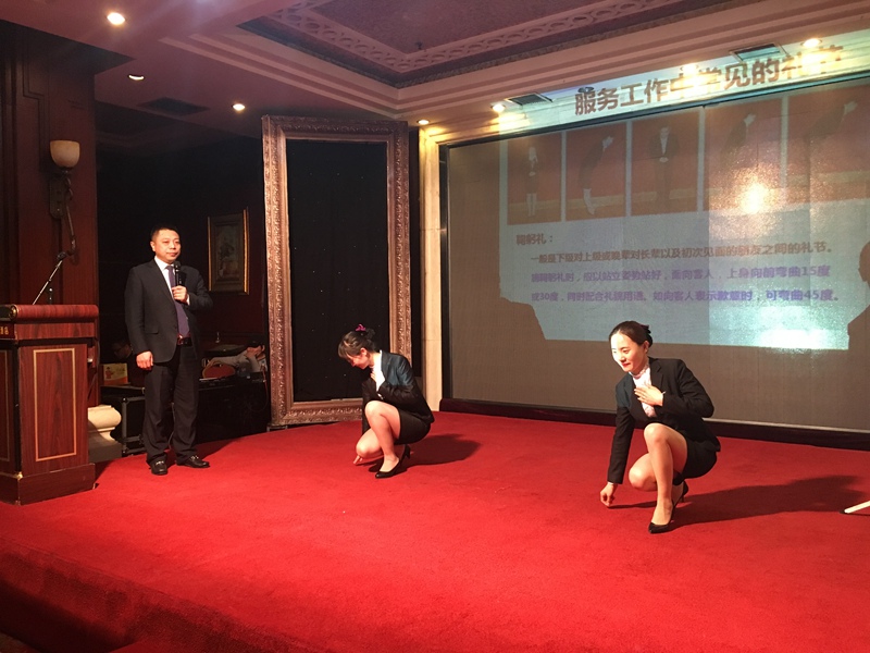 商務(wù)禮儀,通常指的是禮儀在商務(wù)行業(yè)之內(nèi)的具體運用,主要泛指商務(wù)人員在自己的工作崗位上所應(yīng)當嚴格遵守的行為規(guī)范。學習商務(wù)禮儀除了有利于規(guī)范行為外,還有利于傳遞信息、增進感情,以及樹立形象,是個人和企業(yè)發(fā)展不可或缺的重要素質(zhì)。此次培訓,馮總從儀表著裝、交往舉止、溝通禮儀、電話禮儀、會議禮儀等方面入手,不僅詳細講解了職場服裝、發(fā)飾、領(lǐng)帶、著裝搭配以及基本的商務(wù)禮儀規(guī)范,同時還與酒店的兩位工作人員共同現(xiàn)場演示了商務(wù)活動中的站、坐、走、拾物等基本規(guī)范要領(lǐng),以及服務(wù)人員接待客人時的問好、致歉、指引等動作標準,使大家能夠更直觀、準確的掌握基本商務(wù)禮儀。此外,馮總還結(jié)合自身多年酒店工作經(jīng)驗和外出學習經(jīng)驗,以視頻、案例、情景模擬等方式,將實際工作中會出現(xiàn)的問題及行為標準進行了生動展示,有效提高了窗口單位人員的綜合素質(zhì)。