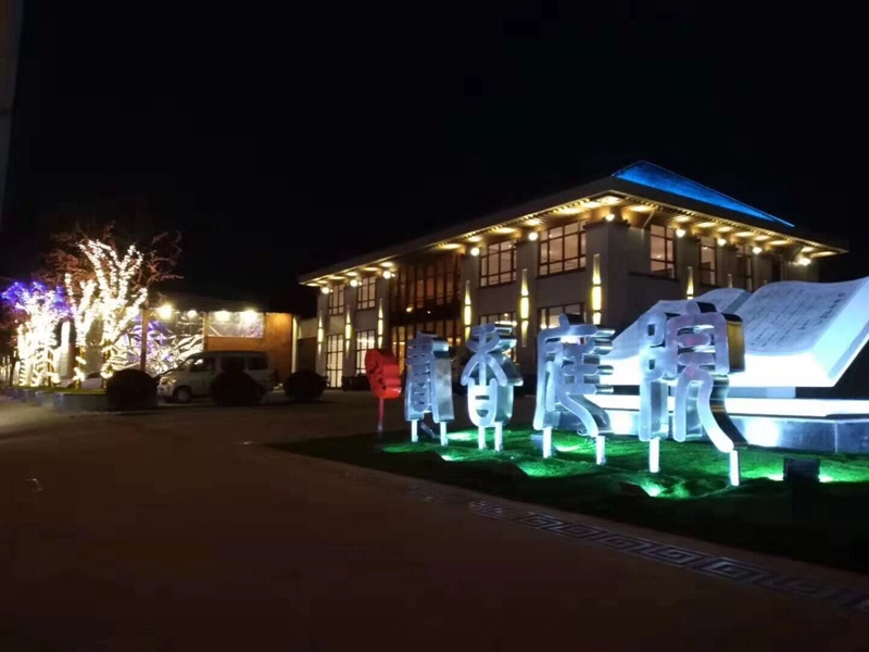 禮儀景觀大道位于園區(qū)景觀主軸線,穿過入戶大堂,首先是“江山影壁”利用框景造園手法,將植株、山石利用景門框成一幅自然山水畫,同時(shí)也起到了很好的分流作用;繞過“江山”至園內(nèi)重點(diǎn)的景觀區(qū)“一池山?!保饘倬W(wǎng)造型山脈與潺潺流水、燈光的完美融合,呈現(xiàn)出一幅立體畫卷;向南沿伸為翰墨閣,用作戶外等候區(qū),也是一個(gè)景觀駐足點(diǎn);依次向南分別是利用LED燈和碎石子鋪成水流漣漪狀的“樹影流徑”和造型雕塑“丹青魅影”;最后是書香十六景中的第六景“荷塘漣漪”,位于景觀中心地帶,貫穿南北區(qū),此處荷花塘設(shè)計(jì)為冬夏兩用,即夏日蓄水為荷花塘,冬日抽干水作兒童游樂廣場(chǎng)。中心縱向景觀層次分明,水景豐富,應(yīng)用LED、金屬小品等現(xiàn)代元素并搭配綠植小品,使得四季皆有景可賞。