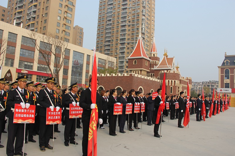 本次活動共由11個方隊組成。第一方隊為保安形象方隊,物業(yè)公司王化啟總經理親任隊長,他們身著新式的保安服裝,隊伍非常整齊。