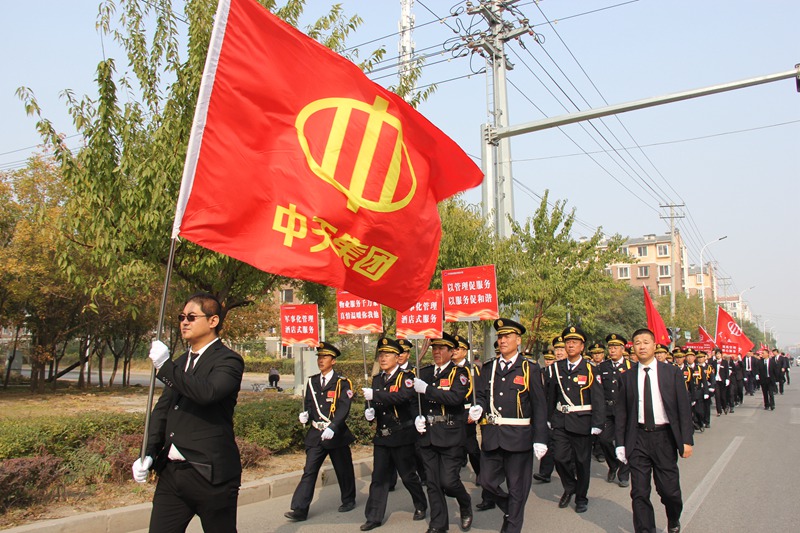集團于洪波總經理非常重視本次活動,親自主持召開預備會議,部署徒步情況。要求組委會要認真組織活動,保證安全,展現中天職工的形象。各分子公司全力支持活動的開展。物業(yè)公司提前三天就開始組織人員進行隊列訓練,并且克服年齡大,體質差的不足,廣大員工積極參加活動。萬豪酒店馮國總經理非常重視,親自安排隊員,前期訓練時參加活動,調動了職工參與的積極性。