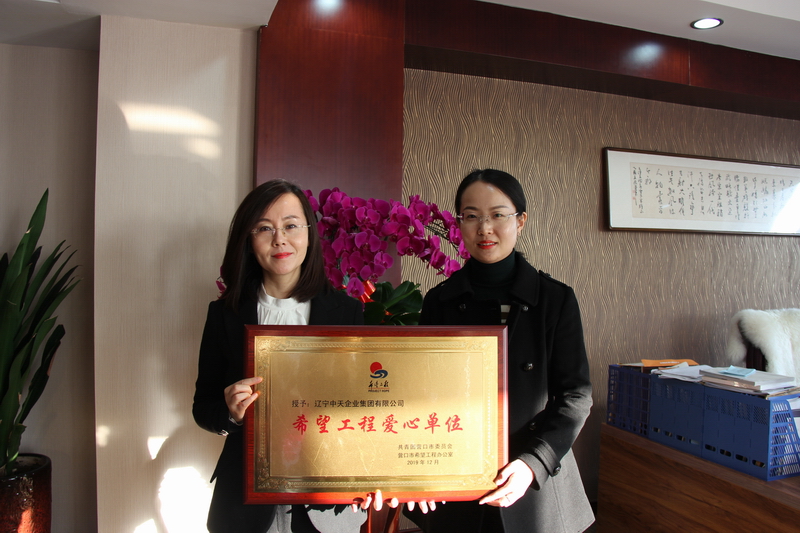 2019年12月18日,集團(tuán)被營口團(tuán)市委、營口希望工程辦公室授予“希望工程愛心單位”稱號。團(tuán)市委王一卓副書記代表團(tuán)市委授獎,于洪波總經(jīng)理代表中天集團(tuán)領(lǐng)獎。