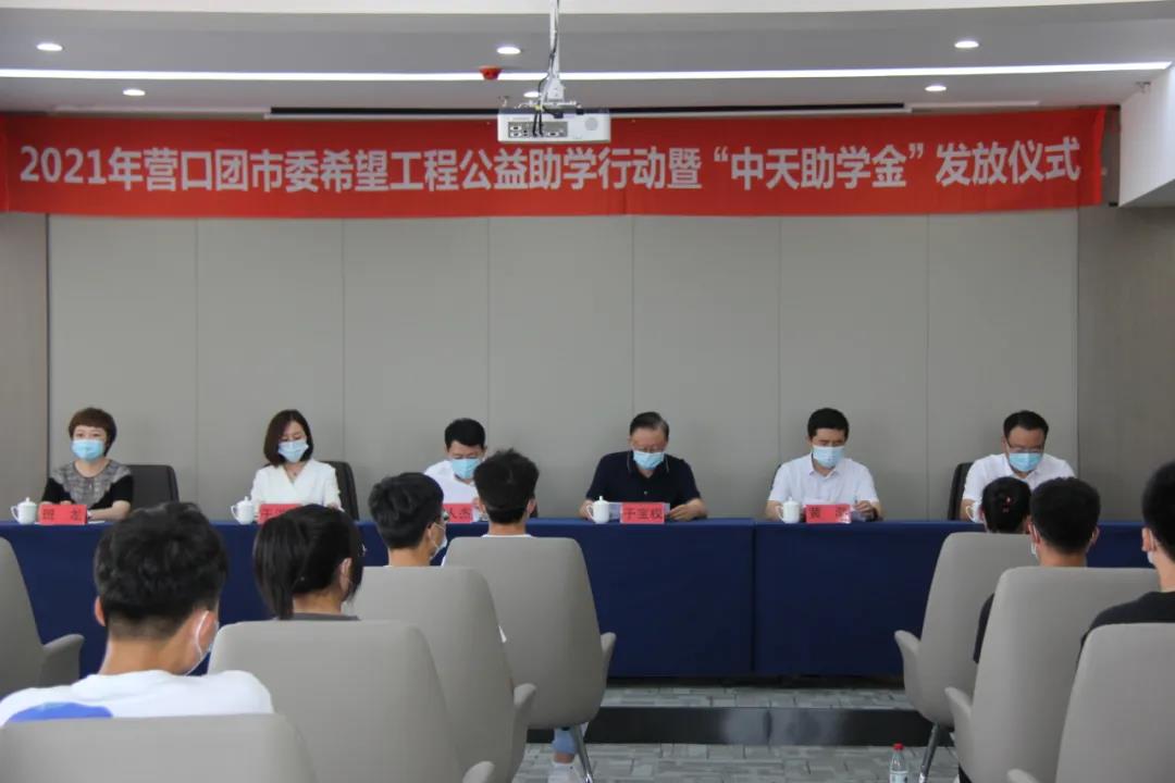 8月13日下午,2021年營口市希望工程公益助學(xué)活動暨“中天助學(xué)金”發(fā)放儀式在中天集團(tuán)總部會議室舉行。營口團(tuán)市委書記李人杰、副書記李禹霖,營口市慈善總會會長黃渤,市委教育工作委員會專職委員班龍,中天集團(tuán)董事長于寶權(quán)、總裁于洪波、行政人力資源總監(jiān)許文明以及獲得資助的35名學(xué)生,出席了本次發(fā)放儀式。