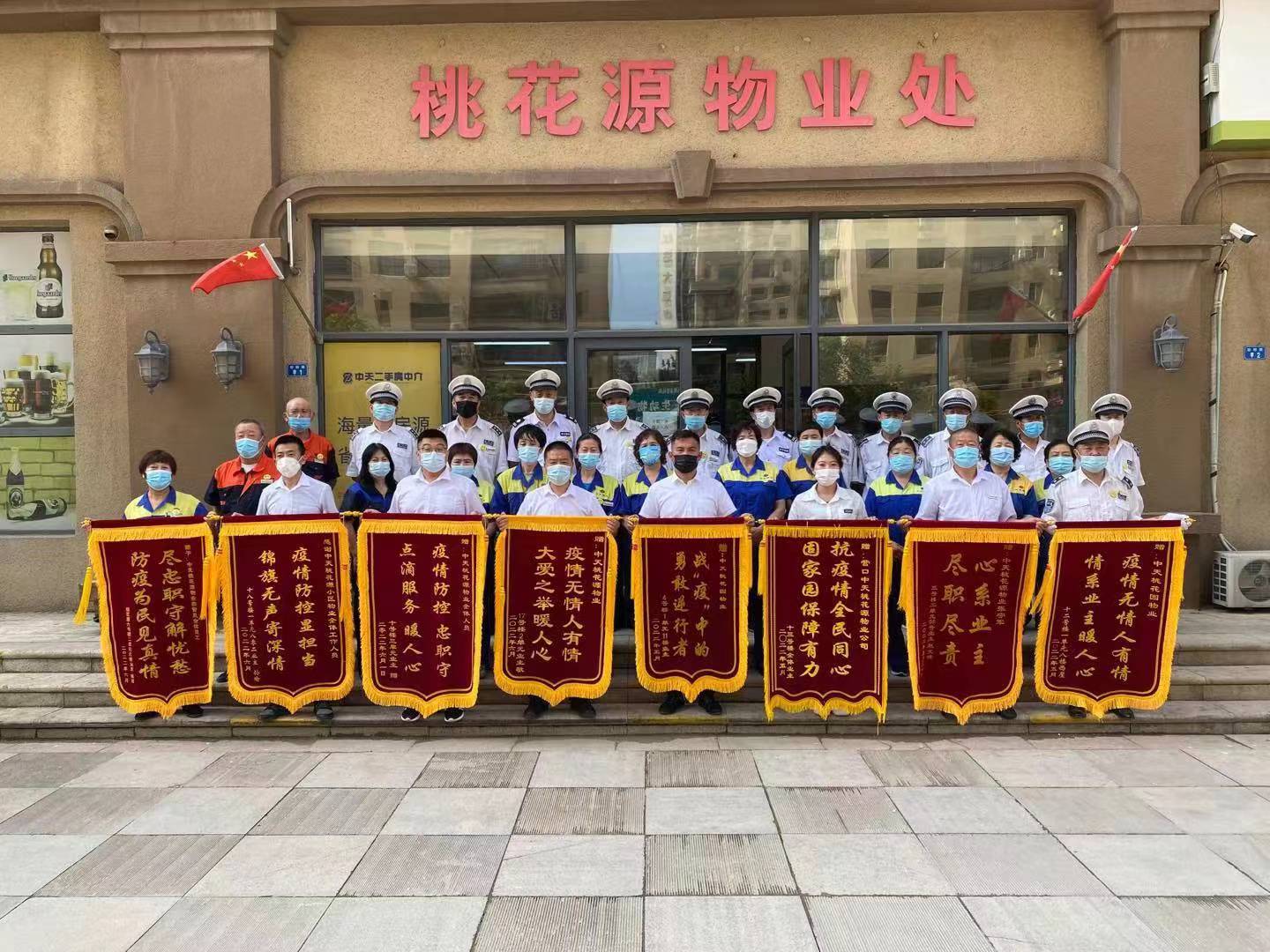 5月30日,桃花源小區(qū)解封的第二天,業(yè)主王先生代表十三號樓全體業(yè)主,將一面印有“抗疫情全民同心,固家園保障有力”的錦旗送至桃花源小區(qū),此后,又陸續(xù)收到7面業(yè)主贈送的錦旗,從中我們既看到了業(yè)主對他們服務(wù)的認(rèn)可,也看出了他們付出的艱辛。從5月5日到5月29日凌晨,24個日夜,576個小時輪值堅守崗位,24輪核酸,80000余人次參與,確保被隔離區(qū)域不擴(kuò)散感染、保障2000戶業(yè)主生活,這道擺在桃花源物業(yè)小區(qū)不足20名物業(yè)人員面前的考題,他們交出了一份高分答卷。為高齡獨(dú)居業(yè)主送飯、幫業(yè)主運(yùn)送氧氣瓶、買藥、送采購的物資……大家忙得腳不沾地。送來錦旗的10#3單元業(yè)主陳先生說,給物業(yè)送錦旗,不是因為物業(yè)為我們一家一戶做了什么服務(wù),而是整個疫情期間,物業(yè)的辛苦付出讓我們感動。