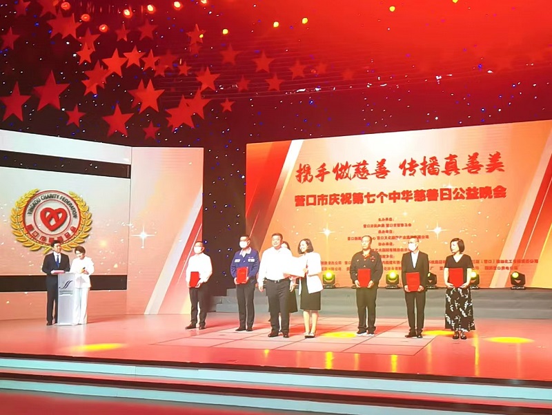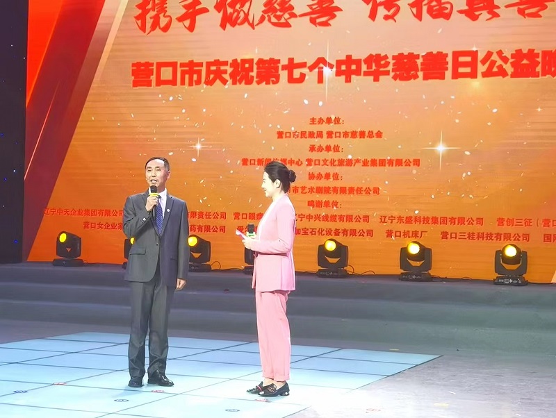 2022年9月27日,營口市慈善總會在營口新聞傳媒中心壹號演播大廳舉辦第七個“中華慈善日”晚會。晚會現(xiàn)場,總裁于洪波代表中天集團向營口慈善總會捐款捐物118.5萬元。