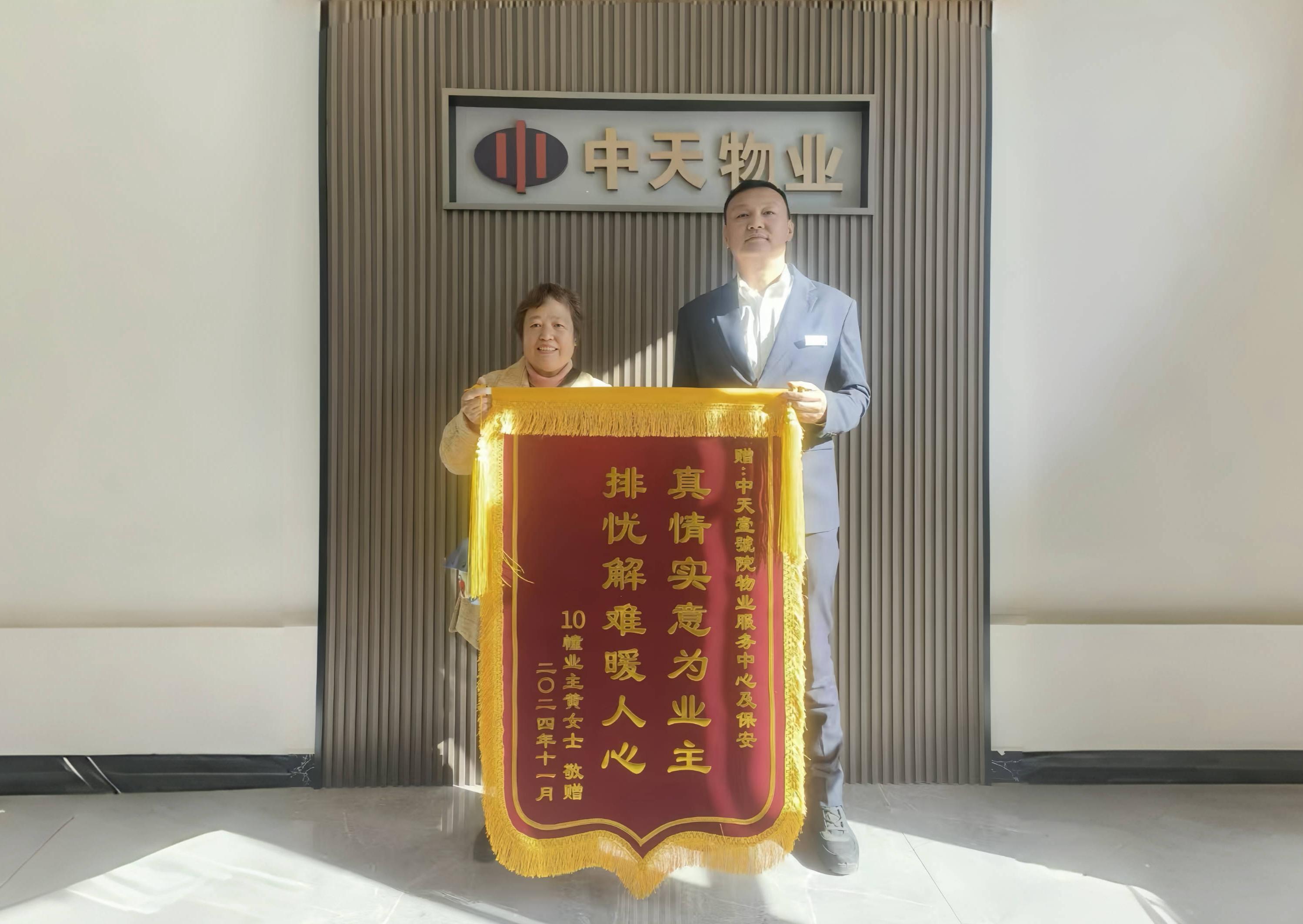 11月5日下午,10號樓業(yè)主給壹號院物業(yè)服務(wù)中心送上“真情實(shí)意為業(yè)主 排憂解難暖人心”的錦旗并向拾金不昧的物業(yè)秩序部的員工致謝。據(jù)了解,原來是一天前曾在小區(qū)發(fā)生了一件“秩序員拾金不昧,手機(jī)歸還失主”的好人好事,為了表示感謝員工這種拾金不昧的精神,業(yè)主親自將錦旗送到壹號院物業(yè)服務(wù)中心致謝。