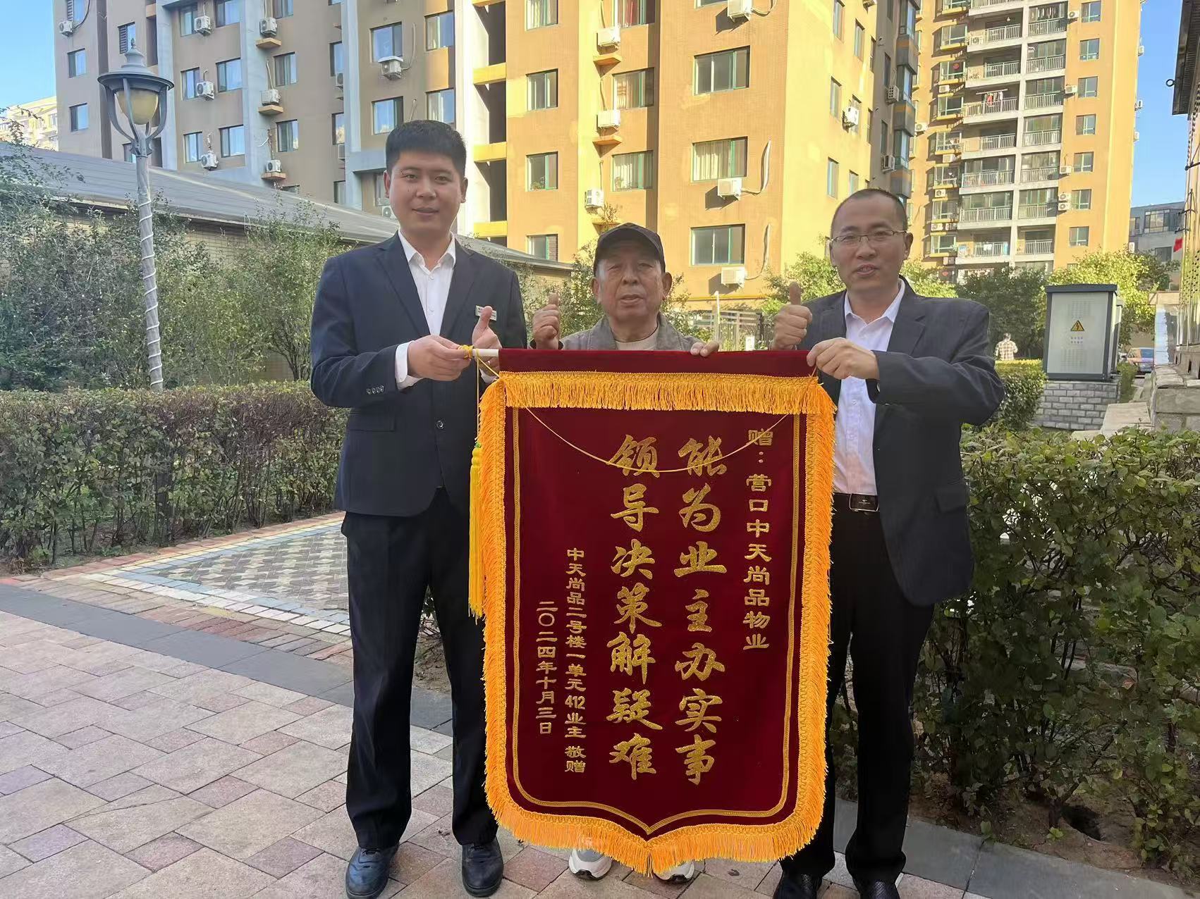 好物業(yè),不僅盡力,而且盡心,對業(yè)主盡心、對工作盡心,業(yè)主才能更貼心、放心、省心、傾心。近日,中天尚品物業(yè)迎來了2號樓1單元404的業(yè)主,業(yè)主手握一面印有“能為業(yè)主辦實事,領導決策解疑難”鎏金大字錦旗,贈送中天尚品小區(qū)物業(yè)部,一聲感謝暖人心懷,一面錦旗彰顯擔當。中天物業(yè)人用真情和行動,為呈現有溫度的鄰里生活全力以赴。