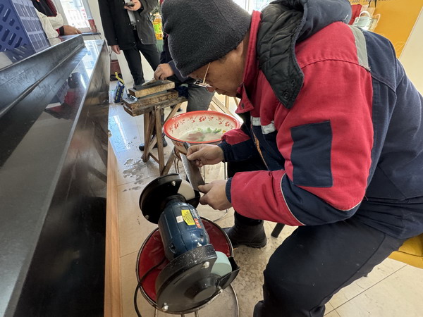 寒冷的天氣也阻擋不住業(yè)主們參加活動(dòng)的熱情,他們拿出家里的菜刀、砍刀、剔骨刀、剪刀、西餐刀……等各式刀具來(lái)到服務(wù)中心的便民服務(wù)點(diǎn)排隊(duì)磨刀。在磨刀等候的閑暇之余業(yè)主們還可以嘮著家常,拉近了彼此之間的距離。物業(yè)工作人員為業(yè)主的每把刀具上貼好樓號(hào)房號(hào),做好登記。