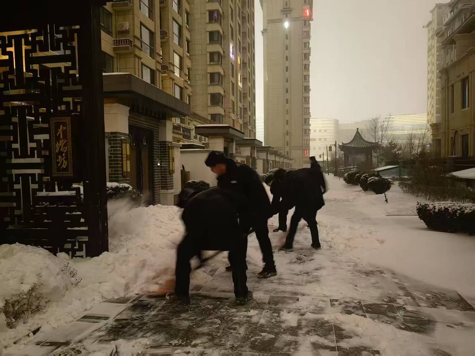 2025年2月11日,夜間來了一場大雪,雪花紛紛揚揚飄落,給城市再次披上了銀裝,為確保小區(qū)居民的安全出行,書香庭院物業(yè)迅速行動,組織工作人員開展了全面的掃雪工作。降雪伊始,書香庭院物業(yè)便啟動了應(yīng)急預(yù)案。物業(yè)工作人員們紛紛拿起鐵鍬、掃帚等工具,投身到緊張的掃雪除冰工作中。小區(qū)的主干道、人行道、單元樓門口、地下車庫出入口等區(qū)域成為了重點清掃對象,這些地方人員和車輛往來頻繁,積雪和結(jié)冰極易導(dǎo)致滑倒、碰撞等安全事故。工作人員們不畏嚴寒,有的用鐵鍬鏟除厚厚的積雪,有的用掃帚清掃路面的殘雪,還有的在易滑區(qū)域鋪設(shè)防滑墊、設(shè)置警示標識,提醒居民小心慢行。