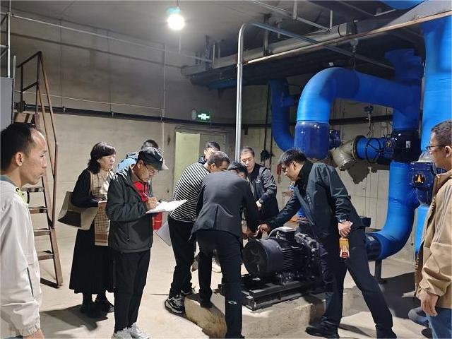 在設備房,專家組檢查了中央空調(diào)系統(tǒng)、電梯及公共區(qū)域照明等核心設施,確認設備運行穩(wěn)定,基本符合國家高效節(jié)能標準。水泵房內(nèi)生活泵、消防泵及排污泵均正常運轉(zhuǎn),專家建議優(yōu)化泵組運行模式以進一步降低能耗。針對供暖泵房,專家組肯定了其節(jié)能設計,并建議依據(jù)實際需求動態(tài)調(diào)整運行參數(shù),提升能源利用效率。在配電房,電氣設備配置規(guī)范、運行平穩(wěn),專家強調(diào)應加強定期維護,確保長期安全高效運行。