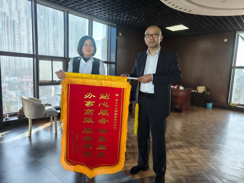 10月13日15時(shí)30分,廣發(fā)銀行營(yíng)口分行辦公室主任李純鋼將一面繡有“貼心服務(wù) 情系業(yè)主,辦事高效 服務(wù)周到”的鮮紅錦旗,鄭重遞交到中天商業(yè)公司孫總手中。這面錦旗的背后,是一段歷時(shí)六載的優(yōu)質(zhì)服務(wù)佳話。