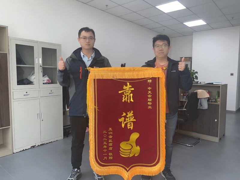 11月29日,中天云璟物業(yè)服務(wù)管理中心迎來一份承載著深厚謝意與高度認(rèn)可的禮物。項目22至24層的客戶——五洲云筑酒店管理團(tuán)隊代表,將一面設(shè)計簡潔而寓意鮮明的錦旗贈予物業(yè)團(tuán)隊。錦旗上,“靠譜”兩個大字蒼勁有力,配有一個醒目的大拇指點贊圖案,以最直觀的方式,表達(dá)了酒店方對物業(yè)自其今年春季入駐以來所提供全方位、高效率支持的誠摯感謝。
