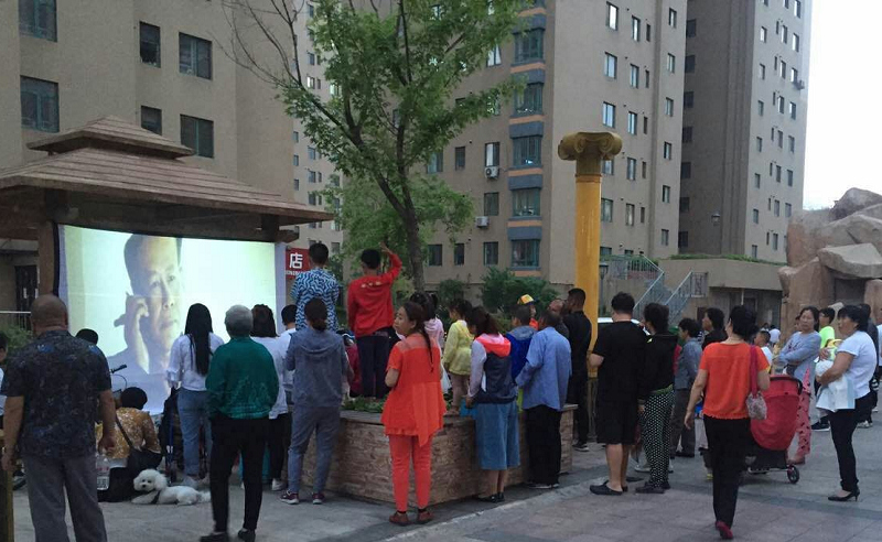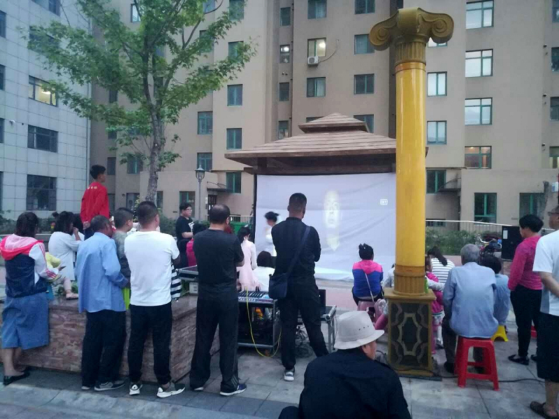 5月25日,在桃花源小區(qū)放映,由于場地選擇在外門市廣場,吸引了周邊小區(qū)的居民,也讓很多路邊的行人頓足。大家一邊看電影,一邊議論,中天的業(yè)主有福氣,小區(qū)的文化多姿多彩。