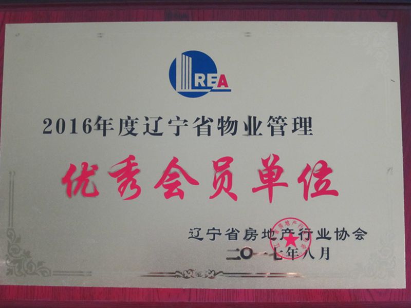 2017年8月省房協物業(yè)專業(yè)委員會,授予中天物業(yè) “2016年度遼寧省物業(yè)管理優(yōu)秀會員單位”稱號。