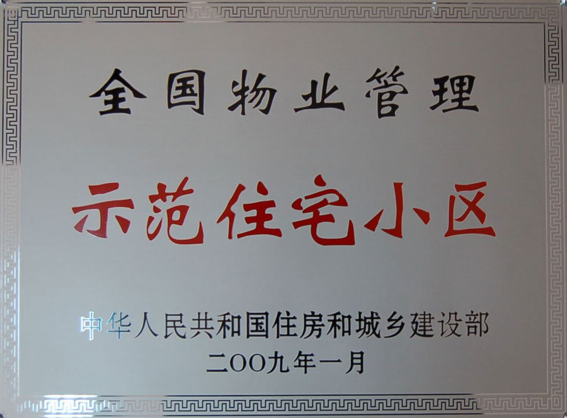 2009年1月,“中天·御景華庭”小區(qū)成為營(yíng)口地區(qū)唯一一家榮獲國(guó)家建設(shè)部“全國(guó)物業(yè)管理示范住宅小區(qū)”稱號(hào)。標(biāo)志著中天物業(yè)服務(wù)公司成為營(yíng)口地區(qū)最優(yōu)秀的物業(yè)服務(wù)公司。