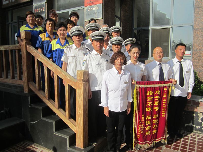 2012年3月15日時(shí)任保安班長(zhǎng)王天均在巡邏中拾到一個(gè)的手包,進(jìn)過(guò)多方查找找到施失主——4號(hào)樓業(yè)主。業(yè)主為了表示感謝,為物業(yè)送來(lái)了錦旗。上面寫著“拾金不昧,品德高尚,忠于職守,盡職盡責(zé)”十六個(gè)字,以此鼓勵(lì)。其實(shí)這些都不算什么,我們只是做好我們的本職工作,再苦再累也是值得的,身為中天人,我感到驕傲和自豪。